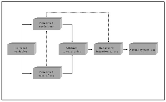 - Davis, F.D. Perceived usefulness, perceived ease of use, and user acceptance of Information Technology. MIS Q. 1989, 13, 319–340. [Google Scholar] [CrossRef]