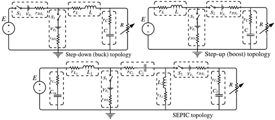 with the auxiliary notation r a u x = r L + r D S 2 + r C R R + r C = r L + r D S 2 + r C | | R . The nominal boost converter parameters and their tolerances are presented in Table 3, as they correspond with the buck converter parameters.