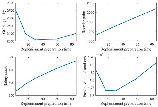- Demand during the preparation time, X, is a convolution of the demand rate and the preparation time L (Kim et al. [47]). Hence, and . For notional convenience, and .