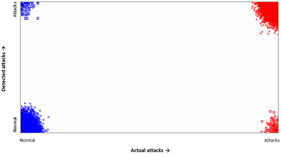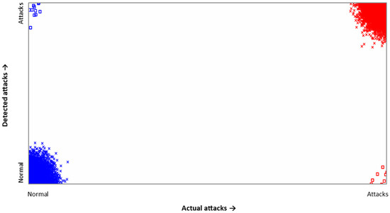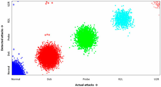 Similar to supervised learning, unsupervised learning principles have been used extensively to design cutting-edge IDSs. Growing Hierarchical Self-Organizing Maps (GHSOMs), as an unsupervised intrusion detection scheme [30], employs a multi-objective approach for extracting suitable features. The detector makes it possible to differentiate between normal and anomalous traffic and different anomalies. The GHSOMs approach on multi-objective feature selection shows detection rates up to 99.8% and 99.6% with normal and anomalous traffic and accuracy values up to 99.12%. Furthermore, an IDS approach is proposed [31] using a modified version of Optimum-Path Forest (OPF) and K-means unsupervised learning. The K-means algorithm is used for producing different homogeneous training subsets from original heterogeneous training samples. The pruning module of MOPF uses centrality and the social network analysis’s prestige concepts for finding attack instances. The experiment is conducted on the NSL-KDD dataset, and the forestalling results reveal that the method shows superior results in terms of detection and false alarm rate.