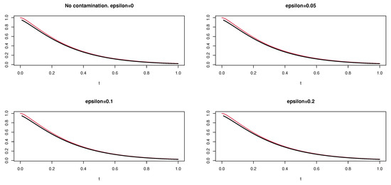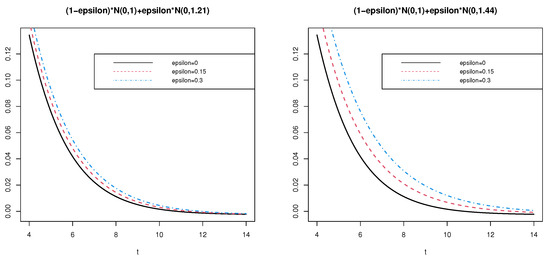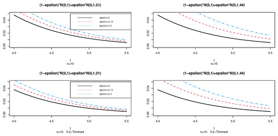 In this framework, represents the small proportion of outliers in the sample (e.g., the proportion of extreme weather events affecting at all locations) and g represents the extent of the contamination. If or , this model reduces to the multivariate normal distribution and, if and , it resembles the normal in the central part but with heavier tails.