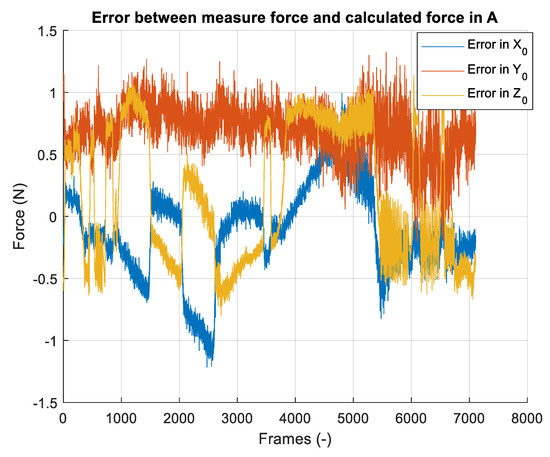 Error between the force measured by the sensor and the force calculated at point A.