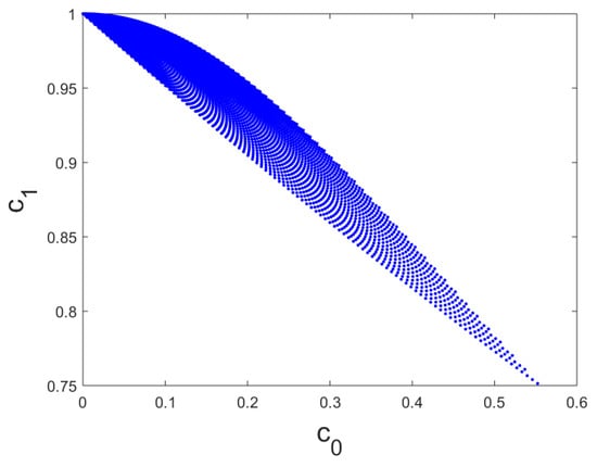 Now, we focus on the range of the DtN in terms of the relevant coefficients , i.e., the range of the map in (27): . In Figure 4, we show this range.