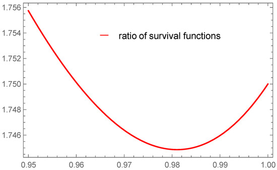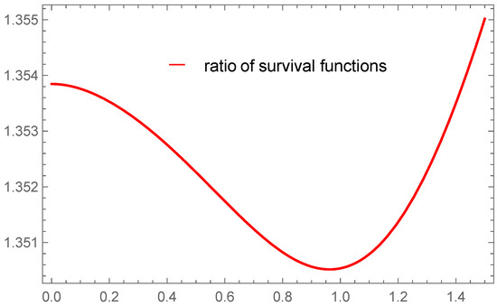 Example 2. Let us consider the standard exponential as baseline distribution with , for . Set , and . Clearly, and . We then haveto be not monotone in (as seen in Figure 2), and this negates the results that and . 6. Concluding Remarks