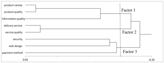 Table 4 indicates the three factors’ compositions: information quality, product quality, and product variety belong to Factor 1; service quality and delivery service belong to Factor 2; and web design, security, and payment method belong to Factor 3. As shown in