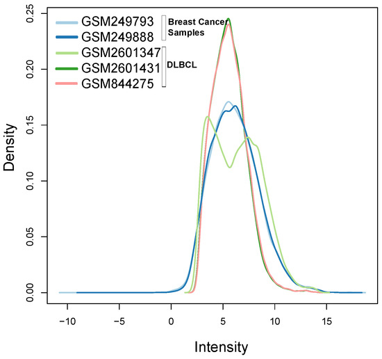- Kauffmann, A.; Gentleman, R.; Huber, W. arrayQualityMetrics—A bioconductor package for quality assessment of microarray data. Bioinformatics 2009, 25, 415–416. [Google Scholar] [CrossRef] [PubMed]