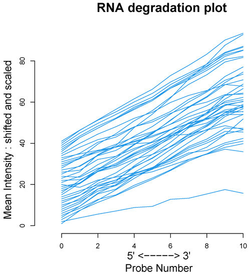 - McCall, M.N.; Murakami, P.N.; Lukk, M.; Huber, W.; Irizarry, R.A. Assessing affymetrix GeneChip microarray quality. BMC Bioinform. 2011, 12, 137. [Google Scholar] [CrossRef] [PubMed]