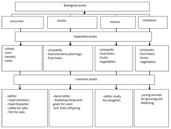 Along with the grouping of biological assets, they can be subdivided by certain criteria. Based on the multiple receipts of agricultural products from a biological asset, they are divided into consumed and fertile (productive) assets. According to the degree of maturity as a sign of the grouping of biological assets, they are divided into mature and immature assets, and from the point of view of the terms of use, into circulating (short-term) and non-circulating (long-term) assets. In the regulatory legal documents governing the accounting of biological assets, it is also necessary to use grouping depending on their nature (biological assets of livestock, biological assets of crop production) and the degree of control. The classification of biological assets, according to the degree of their susceptibility to control, should cover and combine biological assets that are owned, leased, received on a lease, or that are on the right side of economic management, obtained for operational management. Practical use of the classification of biological assets makes it possible to form complete and reliable information related to their movement, as well as ensure proper control over the efficient use of biological assets at the disposal of an agricultural producer.