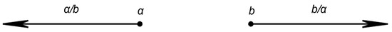 Let be the set of points of a Euclidian geometry. In we define the following law of synthesis “”: if and are distinct points of , then is the set of all elements of the segment ; while is taken to be the point , for any point of (Figure 1). Then, the set of the points of the Euclidian geometry becomes a magma. Usually, is written simply as and it is called the join of and It is worth noting that we can actually define two laws of synthesis: an open and a closed hypercomposition, depending on whether we consider the open or the closed segment.