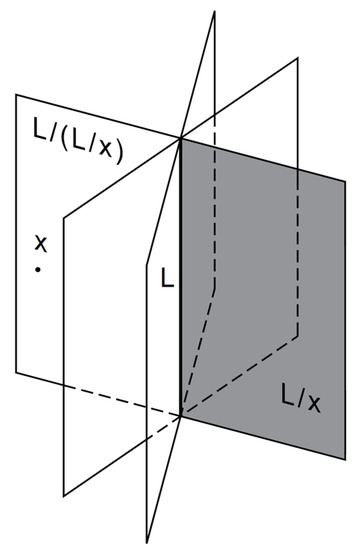In Example 4, a law of synthesis was defined on the set of the points of a Euclidian geometry. If we consider the open hypercomposition, then the inverse law is the following: If and are two distinct points in, then is the set of the points of the open halfline with endpoint , that is opposite to point , while , for any point of (Figure 2). Usually, this law is called the extension of over , or “ from ”.