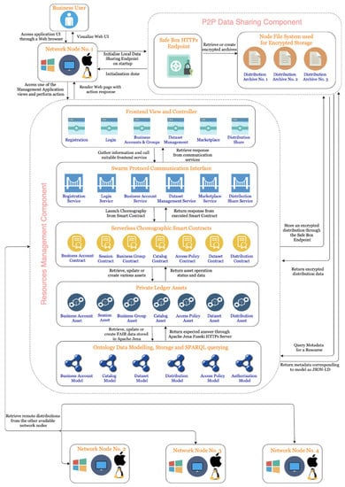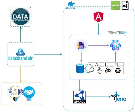 A trending and emerging technical enabler for B2B data sharing is proposed by Epimorphics [], which provides a suite of services and tools for linked data management. These services offer support for commercial customers to model their data and build applications relying on the obtained linked datasets. They also offer consultancy services with customizations depending on each business’s requests. The data management platform has a three-tiered architecture, comprised of load balancing and routing, application services and storage. Load balancing is ensured by providing a company with multiple RDF servers, which provide access through API and user interface to the linked data belonging to the business. Linked data accessible through API is updated and maintained through a data management service, which is responsible with the conversion of unstructured to structured data. Since the conversion process is specific to each business, Epimorphics develops different convertors for each business in order to maximize the findability, accessibility, interoperability and reusability of their data, according to the FAIR principles. Epimorphics’s business model focuses on providing support for companies to prepare their data for integration in B2B processes, rather than facilitate discovery of linked data and enabling new partnerships between companies. A significant downside to this solution is the lack of privacy centered data curation, which may lead to businesses subsequently sharing private user data. This leaves the business exposed to legal issues in terms of compliance with data confidentiality laws, such as GDPR. Another downside to this approach is the lack of integrated data governance mechanisms. Companies are able to share their datasets with their partners by providing access directly to an RDF API, authenticated through OAuth2 tokens. Nonetheless, API security through OAuth2 authentication does not guarantee that data usage can be controlled or its ownership can be asserted by the owner company.