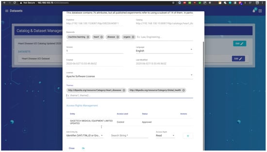 Accessibility is another key requirement when sharing and reusing the published data, according to the FAIR model. Metadata and data should be easily processed by both machines and humans, while being made accessible for manual and automatic discovery on a repository. FAIR data does not necessarily mean Open Data, which suggests that the data repository and its contents may be made public under certain sharing agreement licenses, while also requiring the user to authenticate and receive an authorization to access the data. Following the formerly mentioned principles when implementing a data management system also contributes to the data governance process [,], one of the main issues in the case of Open Data.