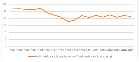Evolution of Public Healthcare Expenditure as a Percentage of Total Healthcare Expenditure. Source: Authors’ own computation.