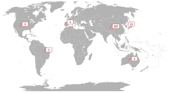 Global distribution of published SRs protocols on acupuncture with quotations. Figure adapted from Fobos92’s world map with CC BY-SA 3.0 license.