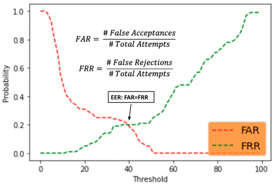 26]. The threshold here for this system is the probability of the predicted class. To determine the best model threshold, we select the equal error rate that is the point where FAR = FRR.