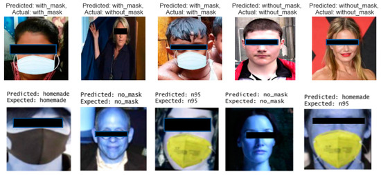 For the improved VGG16 model, we used image size 224 × 224 × 3 as input data. Since we built VGG16 by freezing the convolution base, we only trained the last output layer with our prepared data. 5 labels are assigned for all data, including Mask_Above_Chin, Mask_Correct, Mask_Under_Mouth, Mask_Under_Nose, No_Mask. Then we trained the last layer for 10 epochs with a batch size of 30.