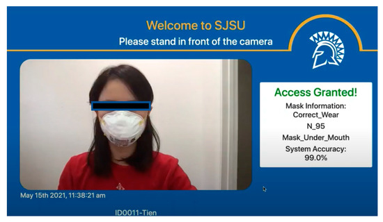 31]. At the gate of controlled and restricted buildings, the Spartan system runs on the edge devices. Visitors with masks should face the camera in order to allow the system to detect the faces and generate predictions.