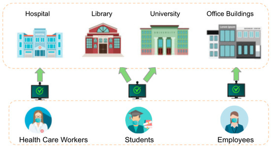 Figure 18 illustrates four possible use cases including hospital, university and library, office buildings. Under controlled environments which require gated access such as companies, university facilities, and hospitals would be required to check not only the presence of masks but also matching identity of users with the existence of the identity in the database. The importance of the feature that checking mask type can be beneficial for hospitals setting because the employees of hospitals might be required to wear only certain types of masks such as N95, KF94 or surgical masks etc. In addition, checking identity behind the mask is a critical feature because users do not need to take off a mask to verify their identity.