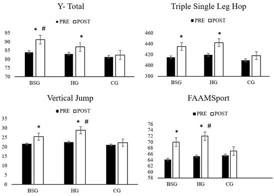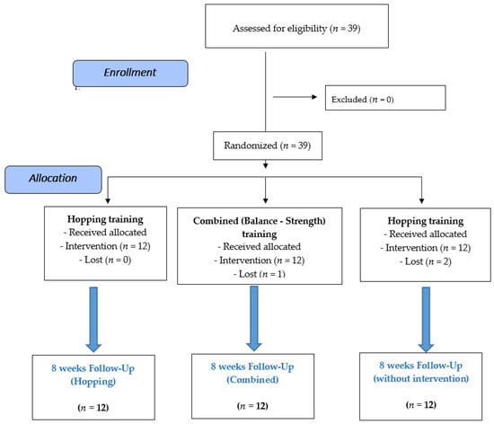 - Minoonejad, H.; Ardakani, M.K.; Rajabi, R.; Wikstrom, E.A.; Sharifnezhad, A. Hop stabilization training improves neuromuscular control in college basketball players with chronic ankle instability: A randomized controlled trial. J. Sport Rehabil. 2019, 28, 576–583. [Google Scholar] [CrossRef]