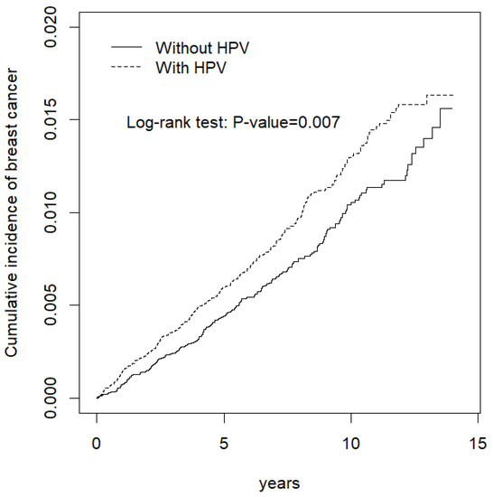 APA StyleLiu, C.-H., Liao, C.-Y., Yeh, M.-H., & Wei, J. C.-C. (2022). Risk Role of Breast Cancer in Association with Human Papilloma Virus among Female Population in Taiwan: A Nationwide Population-Based Cohort Study. Healthcare, 10(11), 2235. https://doi.org/10.3390/healthcare10112235