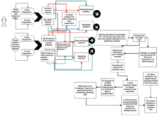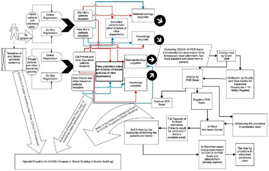 Various impacts of changes in service flow need to be followed up because they can cause new, more extensive problems, so solutions must be immediately sought, or study efforts must be made to find the right solution. First, it is necessary to make SOP or uniformity of service flow in work units that provide the same service product, even though this COVID-19 infection is an example of a very dynamic and unstable situation. There should be at least a clinical practice guideline for procedures for infectious infections. Next, starting to separate infectious and non-infectious patients. This separation effort will undoubtedly increase the ward’s capacity for patients undergoing procedures, including endoscopy. Efforts to socialize policies from the highest level to the bottom require simultaneous and continuous efforts, and there must be an evaluation of whether each party has accepted the policy and how it is implemented. This research is cross-sectional with case studies at the number one national referral hospital in Indonesia, but of course, it will not necessarily show the same results in various other referral hospitals in Indonesia.