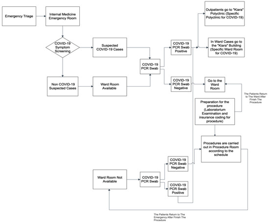 Some recommendations that might be an initial solution to overcome various problems that arise in the field related to hospital readiness in dealing with the future pandemic risk are as follows: (1) It is necessary to make SOP or uniformity of service flow in work units that provide the same service product, even though this COVID-19 infection is an example of a very dynamic and unstable situation. However, the absence of standardized standards can be a gap in providing services that are not up to standard. There is at least a clinical practice guideline for procedures for infectious infections. Next, starting to separate infectious and non-infectious patients by utilizing Kiara’s treatment room (a former COVID-19 treatment room), although still providing bed reserves for the possibility that COVID-19 cases will rise again. This separation effort will undoubtedly increase the ward’s capacity for patients undergoing procedures, including endoscopy.