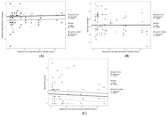 3.1. Gender-Specific Differences in Outcomes between Intervention Groups by Distance to the High-Risk Areas for the Cross-Sectional COVID-19 Survey