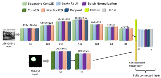 - Sivanandan, R.; Jayakumari, J. A new CNN architecture for efficient classification of ultrasound breast tumor images with activation map clustering based prediction validation. Med. Biol. Eng. Comput. 2021, 59, 957–968. [Google Scholar] [CrossRef]