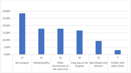 - Crosby, L.E.; Modi, A.C.; Lemanek, K.L.; Guilfoyle, S.M.; Kalinyak, K.A.; Mitchell, M.J. Perceived Barriers to Clinic Appointments for Adolescents with Sickle Cell Disease. J. Pediatr. Hematol. Oncol. 2009, 31, 571–576. [Google Scholar] [CrossRef] [PubMed]
