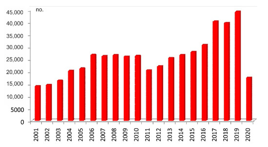 41]. Internationally, the number of overnight stays decreased over the 2019–2020 period by 74%, from 1.5 billion to 381 million, 2020 being the worst year on record for tourism [