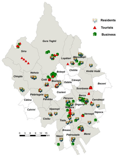 Thus, in the case of the businesses-oriented field research, the selection of businesses influenced how the entire field research was conducted. Firstly, all businesses in the study area were identified, mapped and grouped into four major categories: (i) accommodation units (e.g., hotels, boarding houses), (ii) restaurants, cafes and bars, (iii) visitor attractions, cultural sites or activities (e.g., cultural heritage sites, vineyards, museums) and (iv) other (e.g., festivals, outdoor activities), in the sense that all accommodation units, restaurants, cultural sites, or cultural events were considered tourist attraction nuclei). They may be associated with the ‘producers’ of cultural tourism [