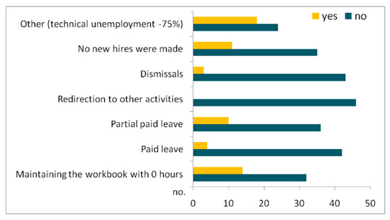 Figure 10). These responses show that local entrepreneurs are trying to maintain the same level of labour force occupancy as before the COVID-19 pandemic, thus preferring several “administrative” measures (i.e., maintaining the workbook at 0 worked hours, technical unemployment) to some drastic measures, such as layoffs (only three cases).