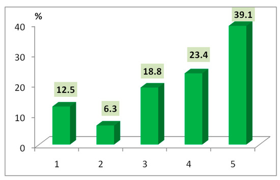 Level “5” was chosen by five residents from the professional category with two or more members in their household (in three cases, namely “historical sites and buildings”, “cultural heritage sites and buildings” and “religious site/events”).