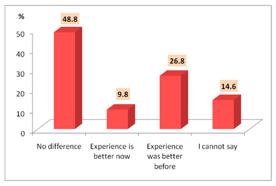 Some differences in satisfaction before and during the COVID-19 pandemic were registered. Most tourists (48.8%) indicated no difference in terms of their current experience in the area compared to their previous one. This may have a negative meaning which may suggest that not many improvements have been made related to the diversification of touristic offers, infrastructure, the promotion of tourist attractions, etc. This is confirmed by the rather high percentage of interviewed tourists (26.8%) who claim that the experience had previously been better, showing that perhaps either some tourist services or the infrastructure have actually declined over time. This comprises tourists’ families falling into the professional category with a household income of under 20,000 EUR/year. At the same time, this statement most likely takes into account the pandemic context, as tourists felt safer in the past, more able to travel and free from restrictions. Although 14.6% of tourists said they did not perceive any differences between the two experiences, it is important to mention that nearly 10%, mainly women, stated that the experience was better this time around (