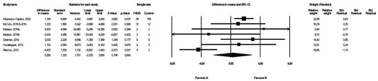 Forest plot—comparison of BMI in FAOD patients vs. controls [14,15,17,18,19,20,25].