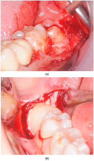 12. Kan, K.W.; Liu, J.K.S.; Lo, E.C.M.; Corbet, E.F.; Leung, W.K. Residual periodontal defects distal to the mandibular second molar 6-36 months after impacted third molar extraction. J. Clin. Periodontol. 2002, 29, 1004–1011. [Google Scholar] [CrossRef] [PubMed]