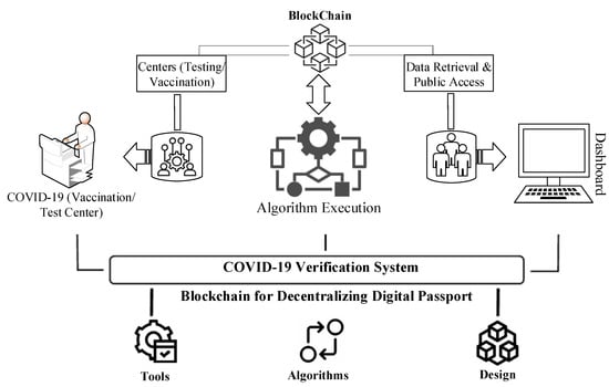 The blockchain consists of a list of cryptographically verified data. Databases lack the cryptographic integrity guarantees that are required to function in hostile environments, which is one of the reasons for blockchain’s popularity. It appears that blockchains with privacy and security guarantees are gaining popularity more rapidly []. The academic community should work together, now more than ever, to sort the blockchain scams from those which offer valuable contributions []. COVID-19 has had a global effect that is unparalleled. Because of its extreme contagiousness, this illness has infected and killed a substantial percentage of the global population. COVID-19 has had a significantly detrimental impact on the global economy as a result of severe mitigating measures; for example, lockdown is a policy used by governments all around the world. COVID-19 symptoms vary in intensity from person to person and the most common symptoms are tiredness, cough, high temperature, and shortness of breath, which are like influenza virus symptoms. However, not everyone who is afflicted with the illness experiences symptoms. Silent carriers, also known as silent spreaders, are those who do not show any signs of the sickness but carry it and pass it on to others []. Furthermore, the illness has a fourteen-days duration. Because an infected person might infect people despite suffering no symptoms during this time, thorough and varied testing is required for a successful COVID-19 response.