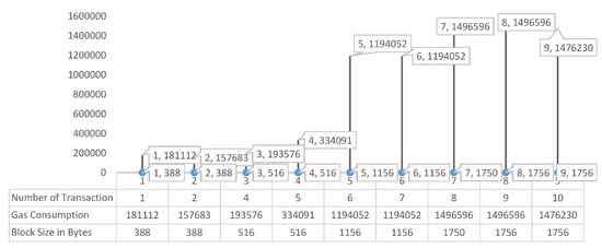 For the Ethereum smart contract to work, the fuel must be paid for. As a result, the original data transfer’s fuel consumption was assessed and compared to the planned data upload’s fuel usage. Gwei is the smallest unit of Ether, the Ethereum cryptocurrency, and it was used to measure fuel use. Gwei is made up of 109 wei.