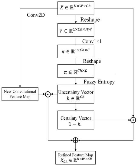 where represents the fuzzy entropy of channel j which measures the uncertainty degree of channel j. Finally, the uncertainty degrees of all channels in the feature map consist of the uncertainty vector .