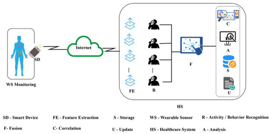 In [73], they used edge-computing architecture to monitor real-time patient behavior and detect falls using an LSTM fall detection model. To track human activity, they employed MbientLab’s MetaMotionR wireless wearable sensor devices, which relayed real-time streaming data to an edge device. To analyze the streaming sensor data, we used a laptop as an edge device and built a data analysis pipeline utilizing bespoke APIs from Apache Flink, TensorFlow, and MbientLab. The model is trained by the “MobiAct” dataset, which has been released. The models were shown to be efficient and may be used to analyze appropriate sampling rates, sensor location, and multistream data correction by training them using already public datasets and then improving them. Experiments demonstrated that our architecture properly identified falls 95.8% of the time using real-time sensor data. We found that the optimal location for the sensors is at the waist and that the best data gathering frequency is 50 Hz. We showed that combining many sensors to collect multistream data improves performance.
