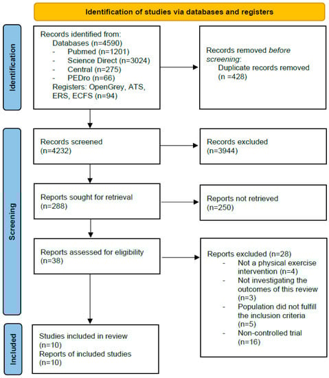 Data extraction was independently performed by two authors (AT, YC). If necessary, a third reviewer (GP) was called upon to resolve any disagreements. The following data were extracted: study details (authors, publication date); sample characteristics (sample size, age, eligibility criteria, clinical status, and mean forced expiratory volume in one second (FEV1)); interventions (type and duration, frequency, intensity); assessment procedures, and results. Mean (standard deviation or confidence interval) or median (interquartile range) change values were extracted. For outcomes expressed as a figure, data were extracted using https://automeris.io/WebPlotDigitizer/, accessed on 22 November 2022. Corresponding authors were contacted if meaningful data were missing from any study. Results were described narratively whenever data were not available for meta-analysis.