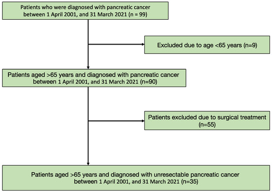 - Jung, H.A.; Han, B.R.; Kim, H.Y.; Kim, H.J.; Zang, D.Y.; Jung, J.Y. Treatment and outcomes of metastatic pancreatic cancer in elderly patients. Chemotherapy 2021, 66, 107–112. [Google Scholar] [CrossRef]