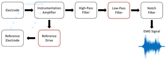 A block diagram of the EMG measurement circuit.