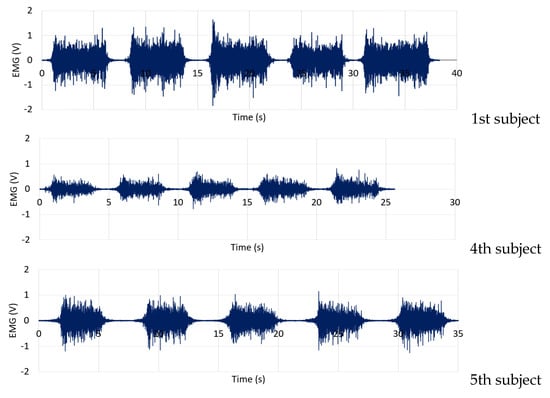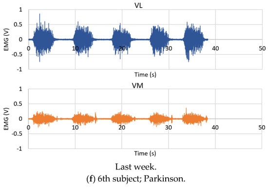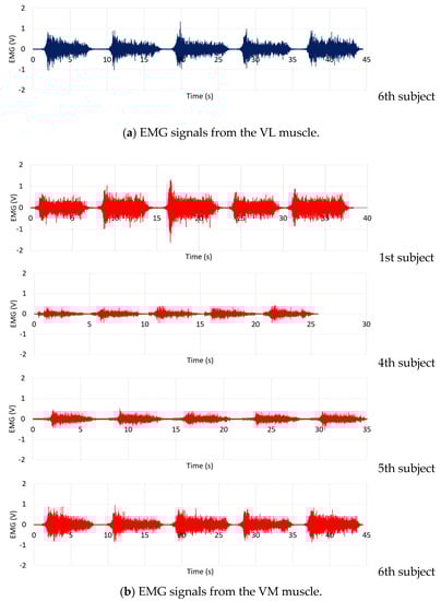EMG signals from the VL and the VM muscles of the healthy subjects.