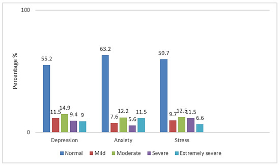 A study in Bangladeshi students [20] revealed that mild to severe stress was reported by one out of four students. Respectively, this percentage was for one third of the sample for anxiety and almost half of the participants for depression. Additionally, the study suggested that stress among university students had a greater effect on their psychology than in college students. Many studies have indicated that students report steadily more mental health issues than the general population [21,22,23]. There are multiple stress factors, such as life-stage transitions, study load, academic pressure during exam periods, intense pressure for academic success, problems associated with their accommodation, acclimation to new social and geographical environments and concerns about the future [24,25]. During the COVID-19 pandemic, the adoption of protective measures, such as the closure of schools and universities, caused disruptions of daily life and lifetime stressors [18]. Higher stress in university students may be due to hampered educational activity during this period and could be dealt with through necessary arrangements for online classes. A stress factor for young people can be incertitude related to progression in academic life [26].