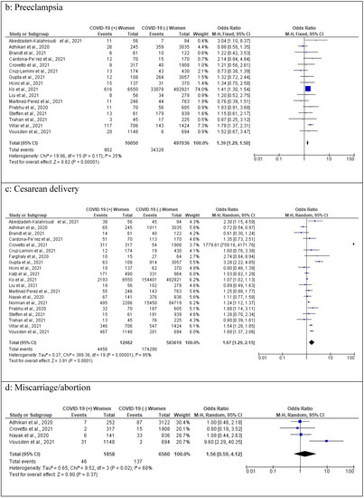 - Wei, S.Q.; Bilodeau-Bertrand, M.; Liu, S.; Auger, N. The impact of COVID-19 on pregnancy outcomes: A systematic review and meta-analysis. CMAJ 2021, 193, E540–E548. [Google Scholar] [CrossRef] [PubMed]