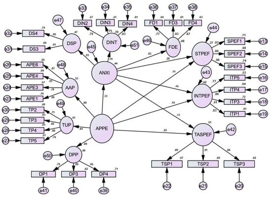 The paths explaining the causal link between the availability, access to, and use of PPEs (APPE) and all three proxies of work behaviours were significant. Thus, the path explaining the relationship between APPE and STPEF indicated a significant effect of 0.113, and APPE and INTPEF recorded 0.197 and 0.221 for the causal link between APPE and TASPEF. These results also show that APPE has the highest influence on TASPEF than INTPEF and STPEF, while the lowest causal link was recorded between APPE and STPEF. The basic analogy of these results is that the availability, access to, and use of PPEs significantly determine all aspects of work behaviours among aviation workers. Not least, the causal link between APPE and ANXI indicated a significant effect of 0.331. This means that a unit increase in APPE will determine workers’ anxiety levels by 0.331. The results for the path estimates are presented in Table 6 below: