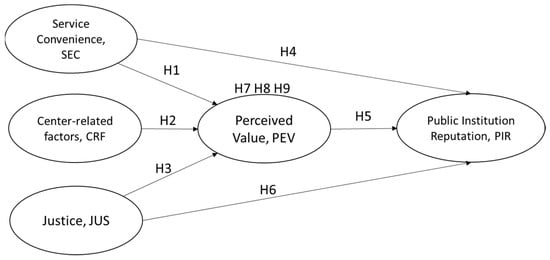 Summarizing the above studies, service convenience, ATR center-related factors and justice have positive effects on perceived value, and perceived value also has positive effects on the reputation of public institution. The higher the perceived value for users of assistive devices, the better their perception of the public sector’s prestige. Therefore, this study hypothesizes that perceived value has a positive and significant effect on the reputation of public institutions. The following research hypotheses are proposed.