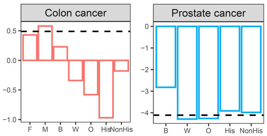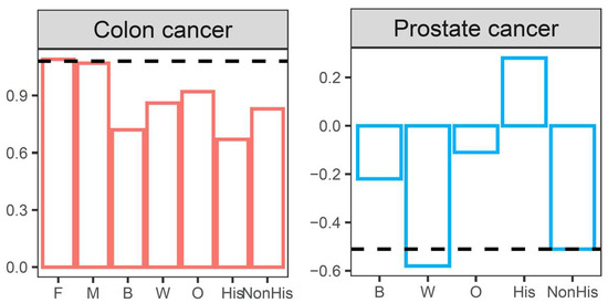 The screening loss ratios for colorectal cancer and prostate cancer across sex, race, and ethnicity are shown in Figure 2.