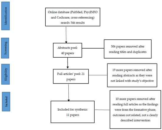 The current scoping review focused on four broad categories for mapping the interventions as used in a previous systematic review: school-based interventions, community-based interventions, digital platform-based interventions, and individual-/family-based interventions [8].